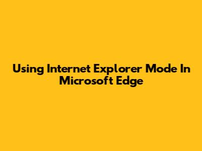 Using Internet Explorer Mode In Microsoft Edge