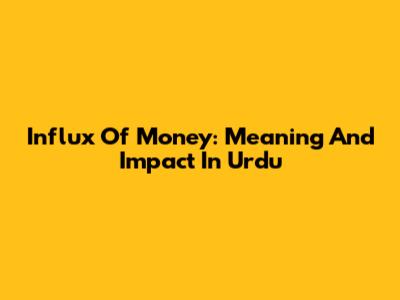 Influx Of Money: Meaning And Impact In Urdu