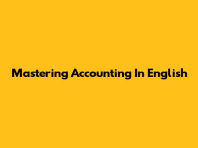 Mastering Accounting In English