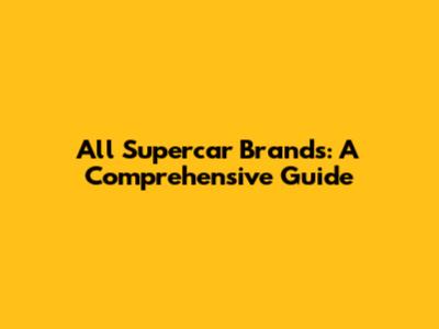 All Supercar Brands: A Comprehensive Guide