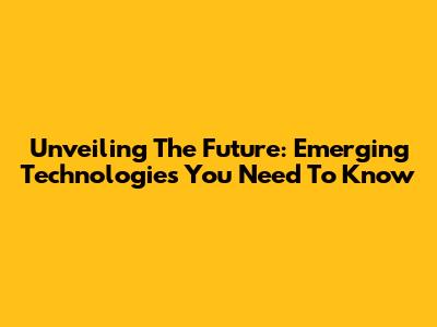 Unveiling The Future: Emerging Technologies You Need To Know
