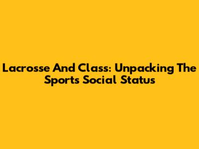 Lacrosse And Class: Unpacking The Sport's Social Status