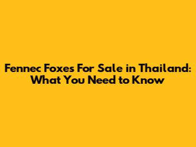 Where to Find Fennec Foxes for Sale in Thailand
