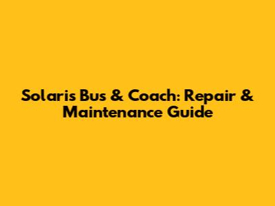 Solaris Bus & Coach: Repair & Maintenance Guide