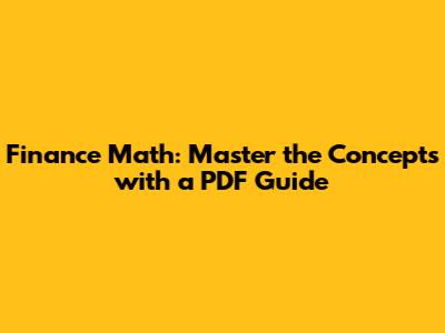 Hey guys! Ever felt like the world of finance math was this huge, complex puzzle? Well, you're not alone! Many students and professionals find themselves scratching their heads when they dive into the nitty-gritty of financial calculations. But don't sweat it! Finance math is totally conquerable, and the good news is, there are fantastic resources out there to help you on your journey. One of the most popular and accessible tools? A PDF guide! That's right, a well-structured PDF can be your secret weapon to understanding and mastering the key concepts of finance math. In this article, we'll break down the essentials, explore why PDFs are awesome, and even give you a heads-up on what to look for when choosing a great finance math PDF. Let's jump in!