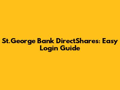 St.George Bank DirectShares: Easy Login Guide