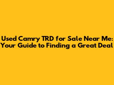 Hey there, car enthusiasts! Are you on the hunt for a used Camry TRD for sale near me? You're in the right place! The Camry TRD is a fantastic car, blending Toyota's legendary reliability with a sporty edge. Whether you're after thrilling performance, head-turning looks, or a dependable daily driver, a used Camry TRD could be your perfect match. In this guide, we'll dive deep into everything you need to know to find the best deals and get behind the wheel of your dream car.