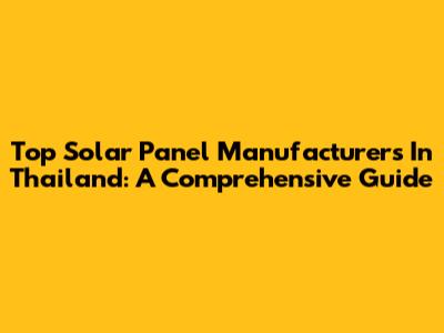 Top Solar Panel Manufacturers In Thailand: A Comprehensive Guide