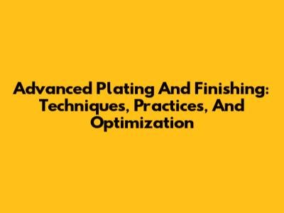 Advanced Plating And Finishing: Techniques, Practices, And Optimization
