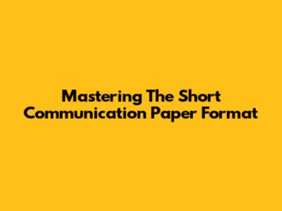 Mastering The Short Communication Paper Format