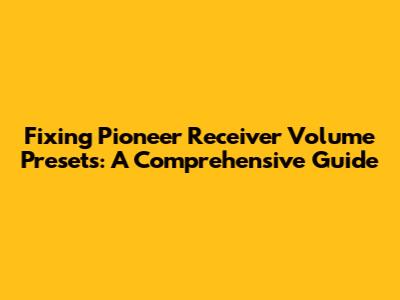 Hey guys, if you're here, chances are you're wrestling with the volume presets on your Pioneer receiver. Maybe they're not saving correctly, the volume jumps unexpectedly, or perhaps you just can't seem to get them set up the way you like. Well, don't sweat it! This guide is designed to help you troubleshoot and fix those pesky volume preset issues, ensuring you get the best audio experience from your Pioneer receiver. We'll dive into the common problems, the potential causes, and, most importantly, the solutions. So, grab your receiver, maybe a beverage, and let's get started!