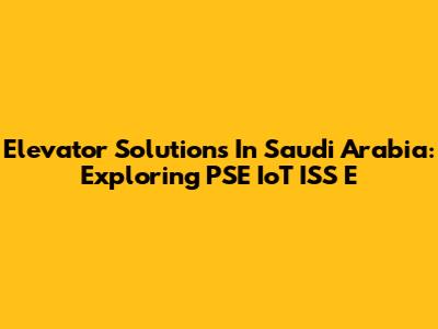 Elevator Solutions In Saudi Arabia: Exploring PSE IoT ISS E