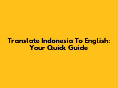 Translate Indonesia To English: Your Quick Guide
