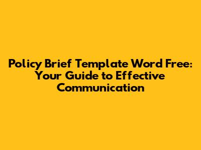 Hey guys! Are you looking to create a policy brief but don't know where to start? You're in luck! A policy brief template word free can be a lifesaver. In this article, we’ll dive deep into why policy briefs are important, what makes them effective, and how you can leverage free Word templates to create compelling briefs that get your message across. So, buckle up and let's get started!