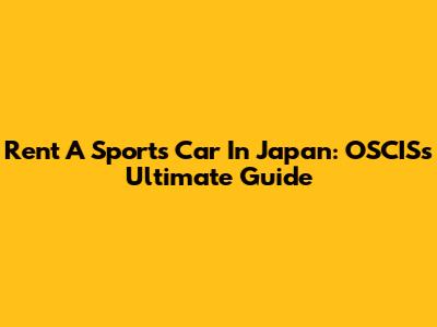 Rent A Sports Car In Japan: OSCIS's Ultimate Guide