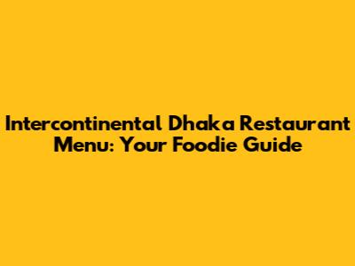 Intercontinental Dhaka Restaurant Menu: Your Foodie Guide