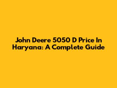 John Deere 5050 D Price In Haryana: A Complete Guide