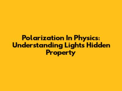 Polarization In Physics: Understanding Light's Hidden Property