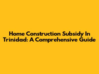 Home Construction Subsidy In Trinidad: A Comprehensive Guide