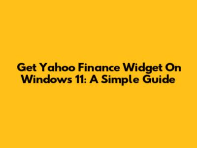 Get Yahoo Finance Widget On Windows 11: A Simple Guide