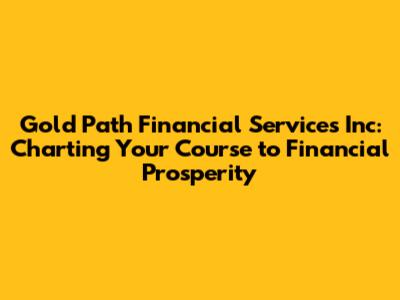 Hey there, financial explorers! Let's dive into the world of Gold Path Financial Services Inc, a company dedicated to guiding you toward a brighter financial future. In this article, we'll explore what makes Gold Path Financial Services Inc a standout in the financial landscape, focusing on their core services, their approach to client relationships, and how they can help you achieve your financial dreams. We'll break down the essentials, making it easy to understand even if you're just starting your financial journey. So, buckle up, and let's embark on this exciting exploration!