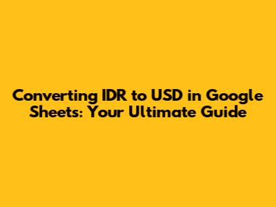 Hey everyone! Ever needed to convert Indonesian Rupiah (IDR) to US Dollars (USD) in Google Sheets? Maybe you're managing international finances, tracking investments, or just curious about the exchange rate. Well, you're in luck! This guide will walk you through how to do it quickly and easily. We'll cover everything from the basic formula to more advanced tips and tricks, so you can become a Google Sheets conversion pro in no time. Let's get started, shall we?