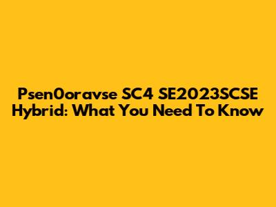 Psen0oravse SC4 SE2023SCSE Hybrid: What You Need To Know