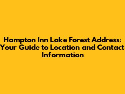 Hey guys! Are you looking for the Hampton Inn in Lake Forest? Finding the right address and contact information is super important, whether you're planning a trip or need to get in touch with the hotel. Let’s dive into everything you need to know about locating the Hampton Inn Lake Forest, ensuring your travel plans go off without a hitch. This guide will provide you with all the details you need, from the precise street address to alternative ways of finding the hotel. Knowing the exact location helps you plan your route effectively, estimate travel times, and arrange transportation. Plus, having the correct contact information ensures you can easily reach out for any inquiries or special requests.