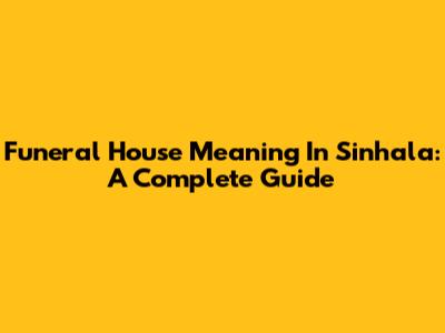 Funeral House Meaning In Sinhala: A Complete Guide