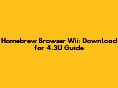 So, you're looking to dive into the world of Wii homebrew? Awesome! Getting the Homebrew Browser up and running on your Wii, especially if it's running system menu 4.3U, opens up a whole universe of possibilities. We’re talking about playing emulators, running custom games, and generally tweaking your Wii to do things Nintendo never intended. Sounds exciting, right? This guide will walk you through the process step-by-step, making it as painless as possible. Let's get started!