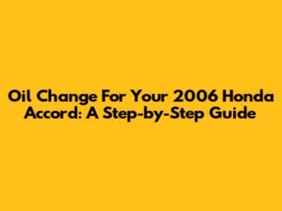 Oil Change For Your 2006 Honda Accord: A Step-by-Step Guide