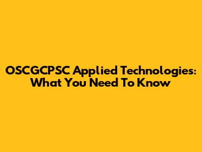 OSCGCPSC Applied Technologies: What You Need To Know