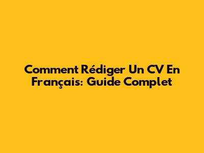 Comment Rédiger Un CV En Français: Guide Complet