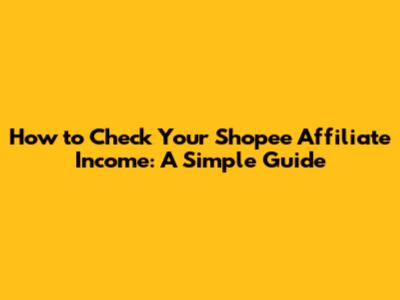 Step-by-Step Guide to Checking Your Shopee Affiliate Income