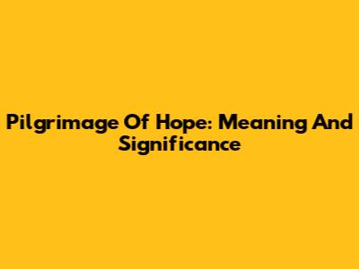 Pilgrimage Of Hope: Meaning And Significance