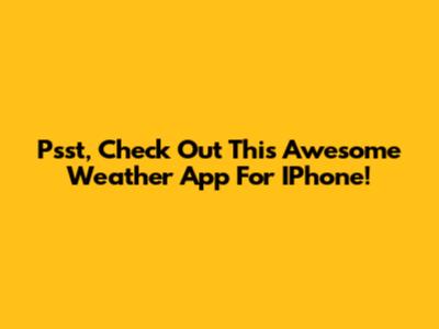 Psst, Check Out This Awesome Weather App For IPhone!