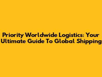 Priority Worldwide Logistics: Your Ultimate Guide To Global Shipping