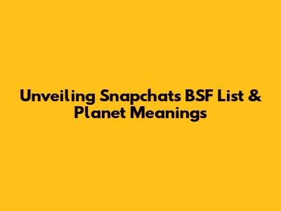Unveiling Snapchat's BSF List & Planet Meanings