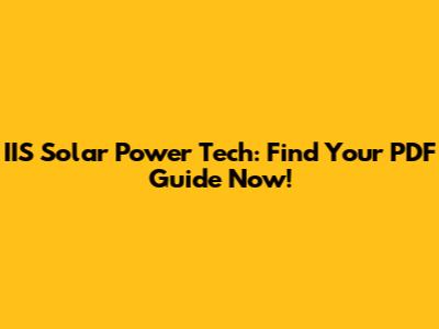 IIS Solar Power Tech: Find Your PDF Guide Now!