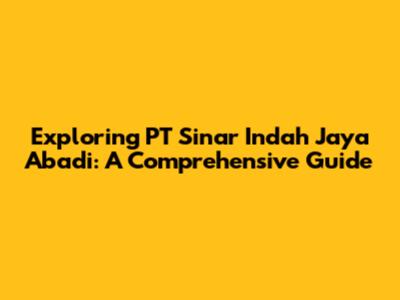 Exploring PT Sinar Indah Jaya Abadi: A Comprehensive Guide