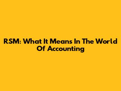 RSM: What It Means In The World Of Accounting