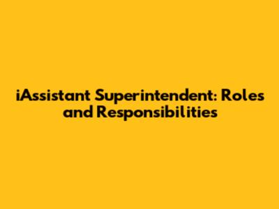 Key Responsibilities of an iAssistant Superintendent