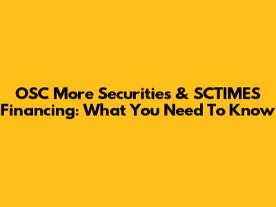 OSC More Securities & SCTIMES Financing: What You Need To Know
