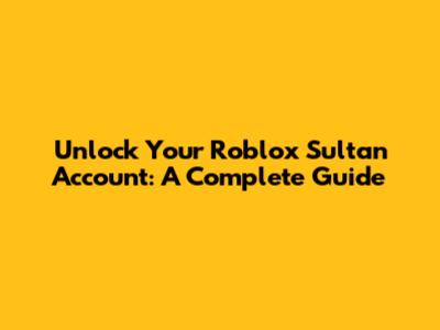 Unlock Your Roblox Sultan Account: A Complete Guide