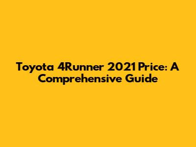Toyota 4Runner 2021 Price: A Comprehensive Guide
