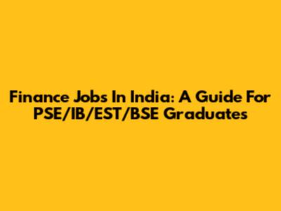 Finance Jobs In India: A Guide For PSE/IB/EST/BSE Graduates