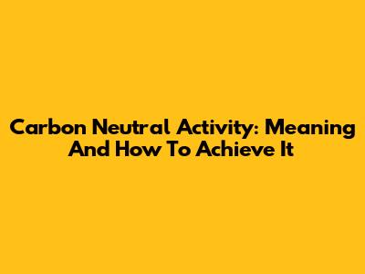 Carbon Neutral Activity: Meaning And How To Achieve It