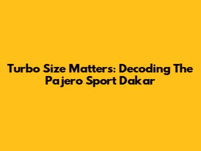 Turbo Size Matters: Decoding The Pajero Sport Dakar