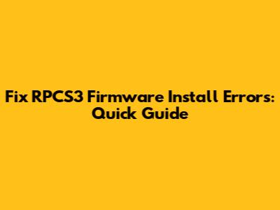 Fix RPCS3 Firmware Install Errors: Quick Guide