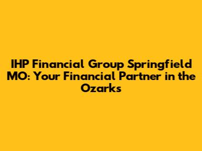 Hey guys! Let's talk about something super important: financial planning. Specifically, let's zoom in on IHP Financial Group in Springfield, MO. If you're in the Ozarks, you've probably heard the name, but maybe you're wondering what exactly they do and why they're worth your attention. Well, buckle up, because we're about to dive deep into everything you need to know about IHP Financial Group. We'll cover their services, what makes them tick, and why they might be the perfect partner to help you achieve your financial goals. Whether you're a seasoned investor, just starting out, or simply looking to get your finances in order, this is for you. Financial planning can be tricky, right? But with the right guidance, it doesn't have to be overwhelming. Let's get started and see how IHP Financial Group Springfield MO can help you navigate the world of finance.